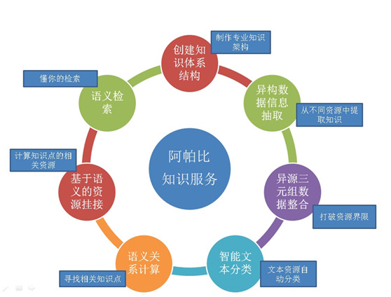 方正阿帕比在語(yǔ)義分析技術(shù)、語(yǔ)義網(wǎng)技術(shù)、非結構化信息抽取技術(shù)、數據挖掘技術(shù)、語(yǔ)義檢索技術(shù)、自然語(yǔ)言處理技術(shù)、機器學(xué)習技術(shù)方面積累了豐富的經(jīng)驗。方正阿帕比在線(xiàn)服務(wù)系統中,部分應用了知識服務(wù)的相關(guān)技術(shù),與傳統的資源服務(wù)相比,提高了服務(wù)的效果。