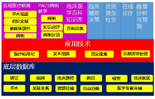 依托于方正阿帕比醫藥領(lǐng)域相關(guān)的豐富底層資源,應用中文分詞技術(shù)、非結構化信息抽取、文本挖掘、自然語(yǔ)言處理、語(yǔ)義搜索和數據統計分析預測等先進(jìn)技術(shù),打造一個(gè)集臨床醫學(xué)百科知識、臨床輔助決策、PACS病例教學(xué)、在線(xiàn)診療、遠程醫療教育等功能于一體的醫療知識服務(wù)平臺,從而為醫學(xué)院學(xué)生和住院醫師提供學(xué)習參考,提高廣大基層醫療人員的醫療水平,為醫生提供臨床輔助決策,提供優(yōu)質(zhì)醫生互動(dòng)交流和學(xué)習提高平臺,為醫院和醫療監管部門(mén)提供數據分析和趨勢預測。